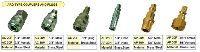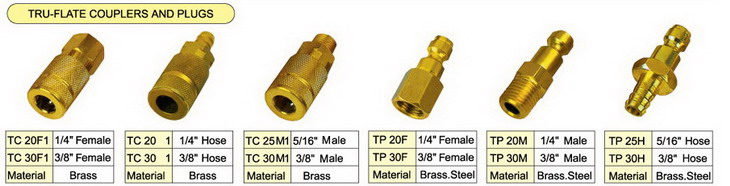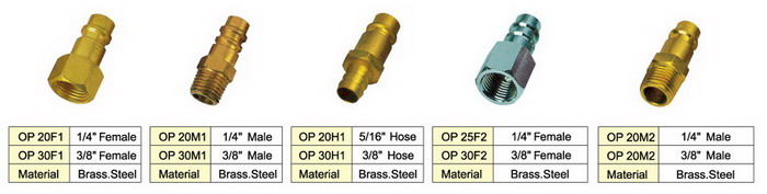 We supply varial type brass pneumatic couplers, including milton type couplers and plugs, Tru-flate couplers and plugs, ARO type couplers and plugs, Universal type couplers and plugs, ORION types couplers and plugs, etc. Every type has the femal thread couplers and plugs, male thread couplers and plugs, tubing couplers and plugs, and they’re exchangeable to each other, so that one series can meet many different connection needs. The milton type couplers and plugs, Tru-flate couplers and plugs, ARO type couplers and plugs, Universal type couplers and plugs are most popular in USA, and ORION type couplers and plugs are popular in Europe.